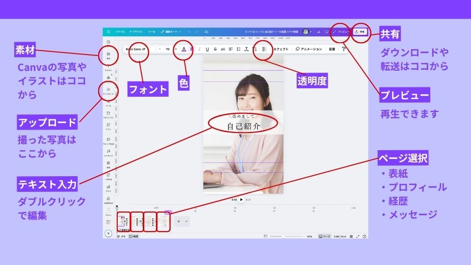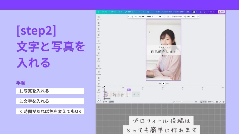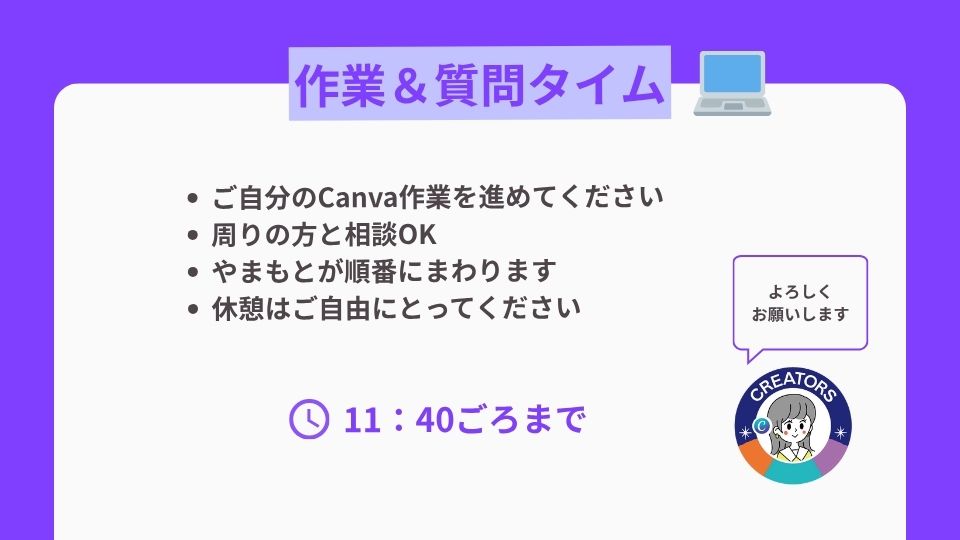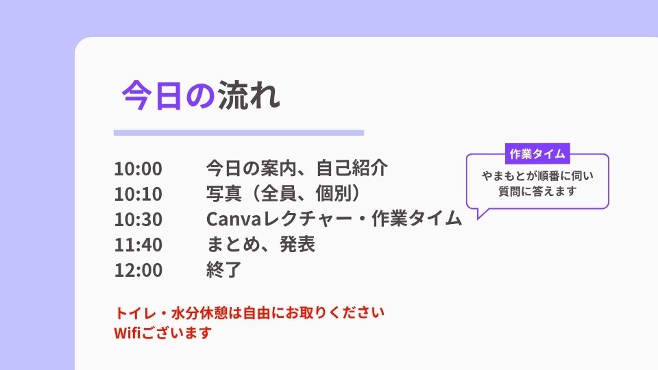 Canvaのテンプレートを活用しながら、写真やテキストを整えて、2時間で完成を目指しました。