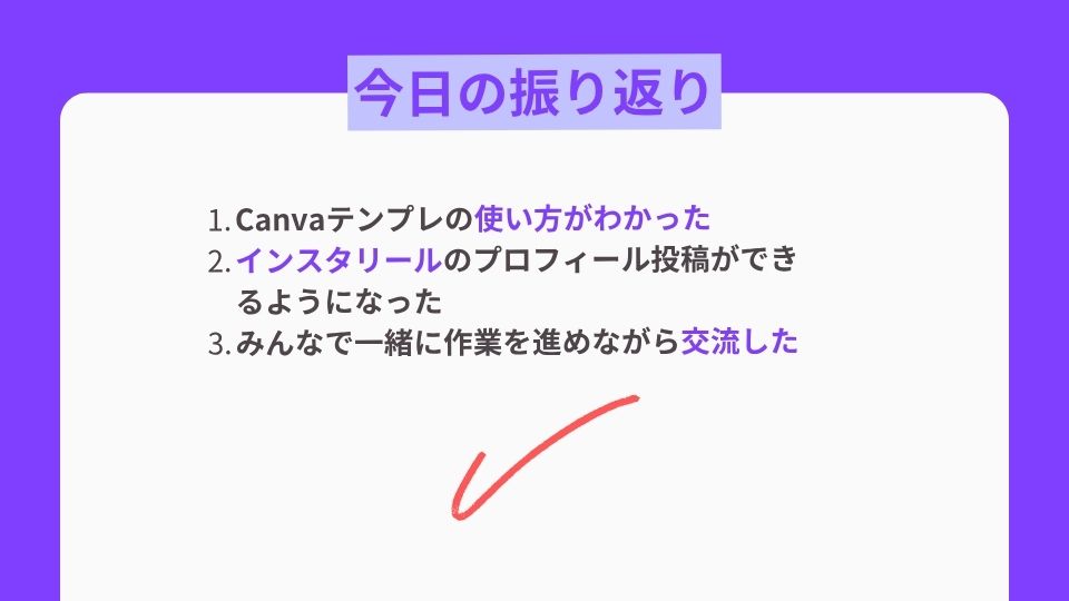 参加者の皆様が、家に帰ってからも復習できるよう、スライドでも使用した「リールの作り方」と「インスタアップロードの手順」の2点の動画をプレゼントいたしました