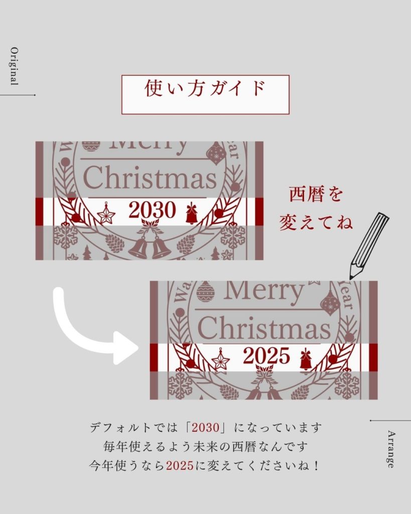 色を変えたり、メッセージを追加して素敵なクリスマスカードに仕上げてくださいね
